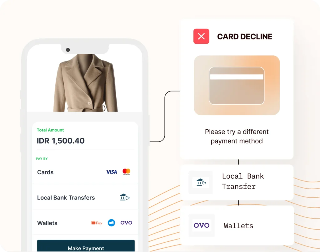 Card payments can fail for many reasons, including issuer restrictions, authentication errors, or network issues. Offering multiple payment methods — including cards and local payment options — helps increase success rates for global customers.